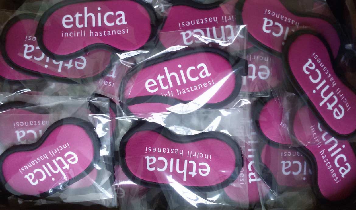 Medikalcilere, şirketlere, promosyonculara, ajanslara uyku göz bandı, Kişisel Kullanım ve Hediye olarak dağıtılabilecek bu kaliteli ürün için logo arma yazı baskıları yapılmaktadır.